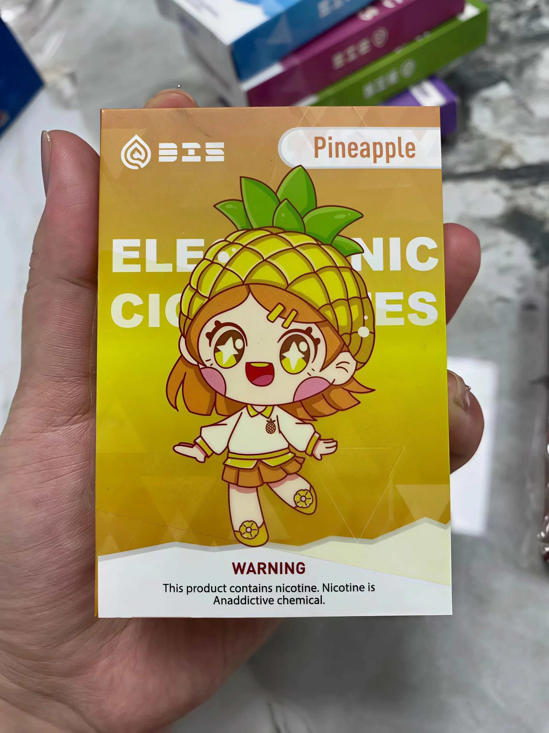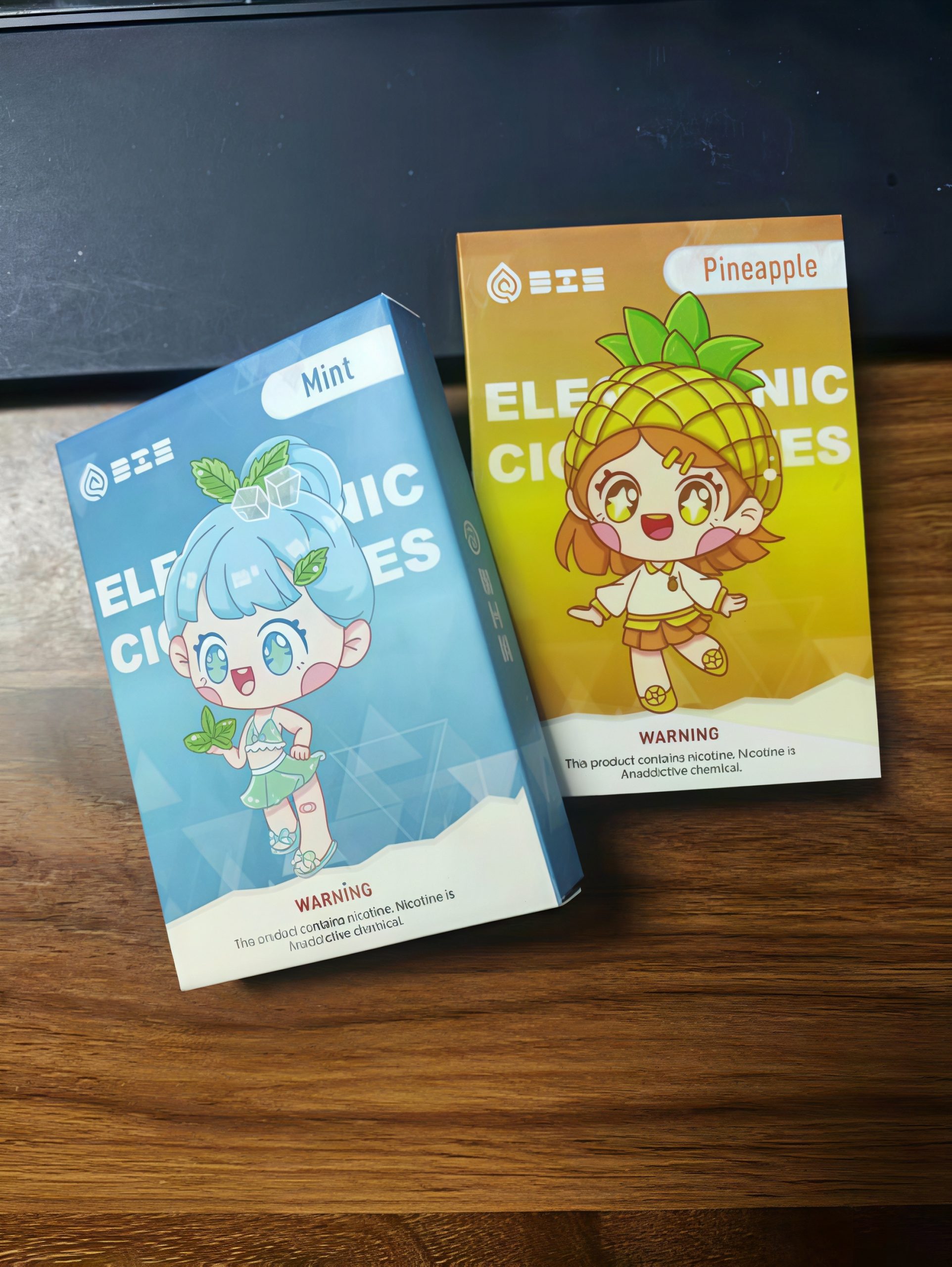 從外盒到煙彈本體,皆以少女系卡通風格呈現。少女卡通系列鎖定喜愛甜感水果、重視外觀設計與日常放鬆感受的族群,是新手與輕度使用者的熱門選擇。入口清甜柔順、果香自然,不追求過重擊喉,而是耐抽、舒服、無壓力的日常口感。
